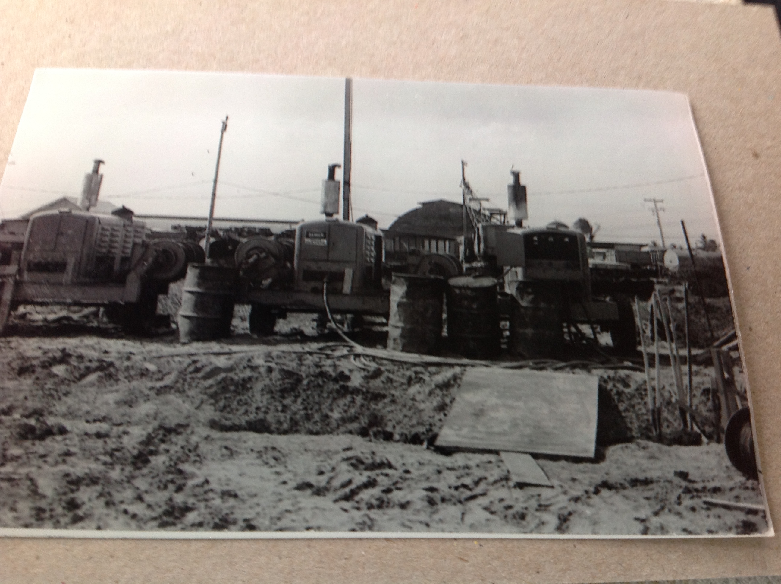 barrels in background.